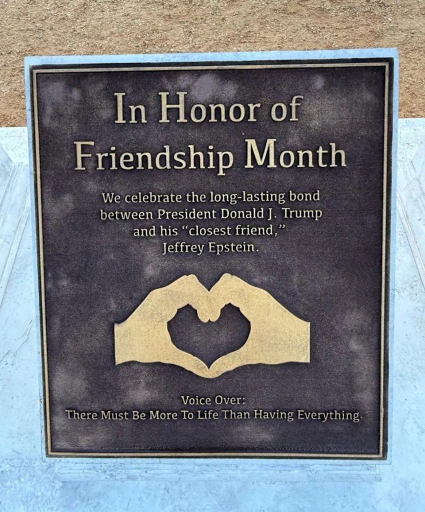 Instalan estatua del presidente Trump y el fallecido Jeffrey Epstein frente al Capitolio, en Washington.