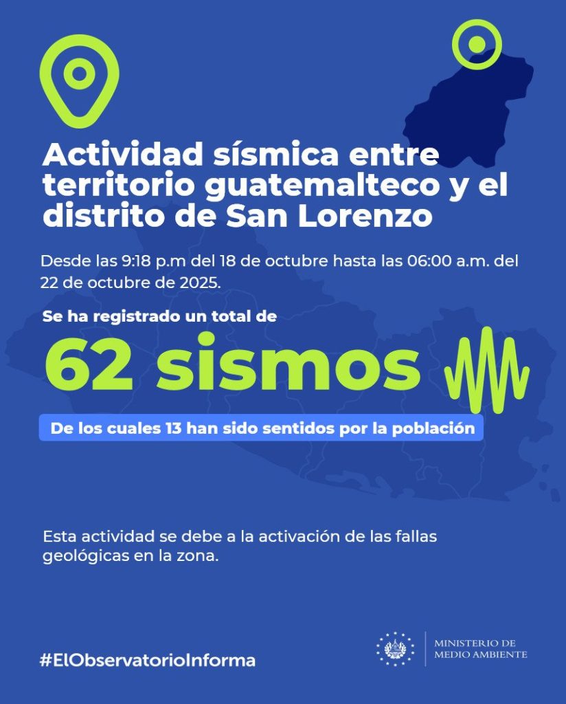 Desde el pasado 18 de octubre, se han registrado un total de 62 sismos en el territorio guatemalteco, así como en el sector de San Lorenzo en Ahuachapán.